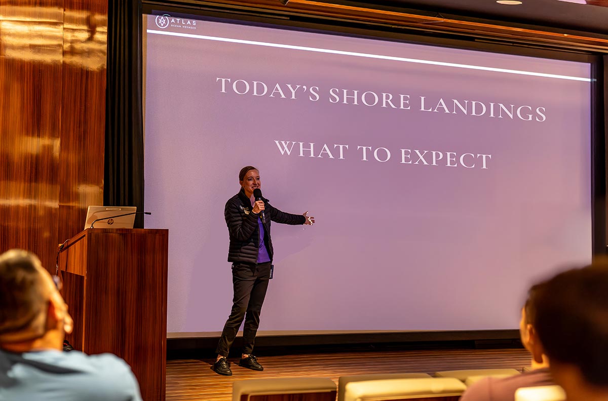 Each day the expedition leaders and team share valuable information on everything from the weather patterns influencing your route to the wildlife you can expect to see on your next shore landing.