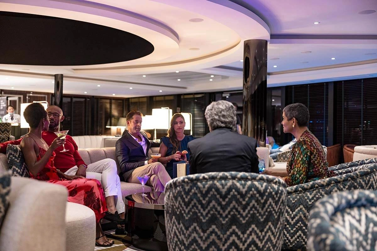Meet other intrepid travelers, spend some time in the spa, or learn about the places you’ll visit and wildlife you’ll see.