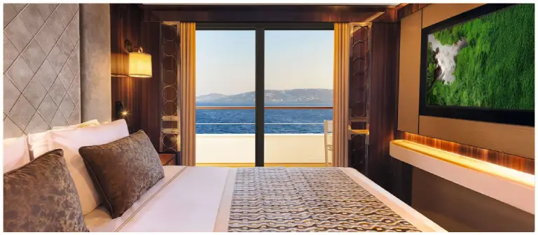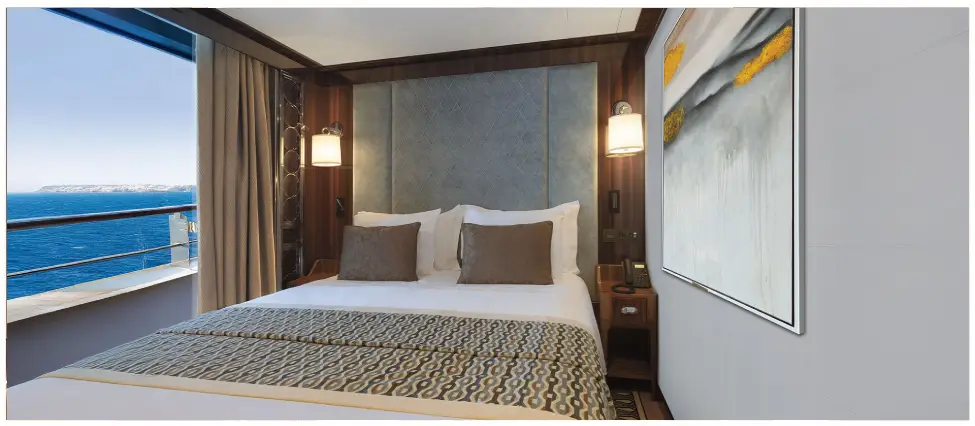 Location: Deck 5 and 6 | Up to 2 guests | 270 sq. ft. of luxury and comfort, including a spacious private balcony with stylish furnishings
